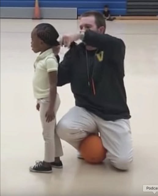 He only saw a child who needed to feel okay. Between drills and bouncing balls, he balanced on a basketball, clumsy fingers working through small braids, making sure no hair would sting her eyes when she ran. No big speech. No audience. Just a grown man choosing patience over hurry, tenderness over distance, presence over distraction.When the clip escaped the gym, millions recognized something they’d nearly forgotten: the quiet, daily courage of people who stand in the gaps for children who are not their own. They tie shoes, learn nicknames, hear unspoken fears, and become safe places in a loud, uncertain world. Jonathan Oliver never set out to go viral; he simply chose to see one little girl fully. In that simple act, he reminded everyone watching that real heroism rarely looks cinematic—it looks like showing up, gently, every single day.