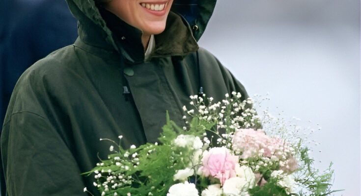 Princess Diana (1961 – 1997) wearing a green barbour coat against the rain at Ardveenish on the island of Barra during a tour of the Western Isles, July 1985. (Photo by Jayne Fincher/Princess Diana Archive/Getty Images)