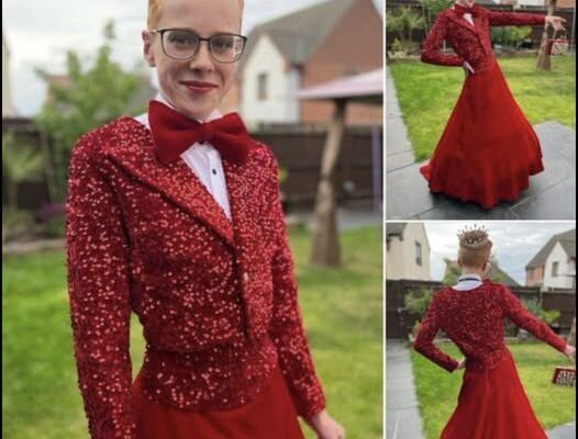 A second shares, “I am so happy for your son he looked absolutely amazing!!!My son is trans, after 3yrs of transphobic bullying in Jan b4 GCSEs [General Certificate of Secondary Education offered in parts of the UK] I had to take him out of school for his mental health. He was always going to prom in a tux and he was deprived of the chance.”