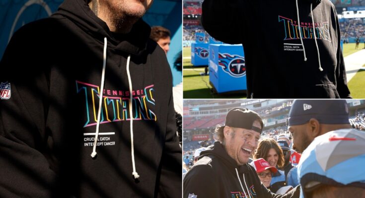 At Nissan Stadium, Jelly Roll mingled with fans, enjoyed the atmosphere, and posted game-day moments on social media. His clean-shaven face highlighted a brighter, more polished look while still keeping the down-to-earth charm that has made him one of the most relatable figures in modern music.