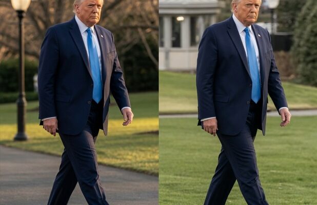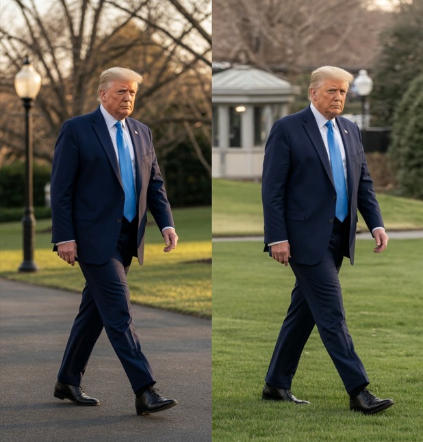 Originally circulated in 2025 by various online accounts, the images depict Trump walking across the White House South Lawn before boarding Marine One, the presidential helicopter used for official transport.