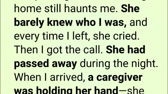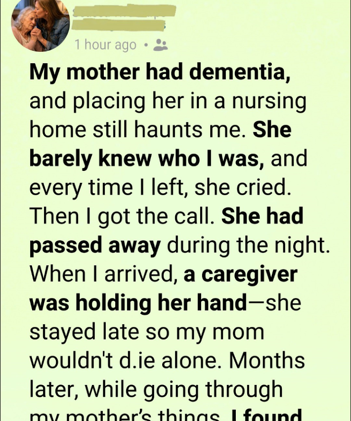 When I arrived, the room was not empty. A caregiver named Sarah was sitting beside the bed, still holding my mother’s hand. She looked tired, but steady. She apologized for being there, as if she needed permission to have stayed. She told me she had remained after her shift because she didn’t want my mother to be alone. Through the night, she had brushed her hair, read aloud from a worn book of Tennyson, and spoken to her as if she could still follow every word. It wasn’t dramatic. It was consistent, quiet care.