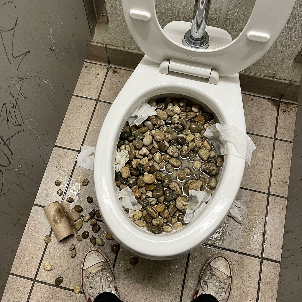 so yeah i went to the bathroom and did this… filled the toilet with rocks and just left it like that because if she wants to treat me like trash then i’ll match the energy, simple