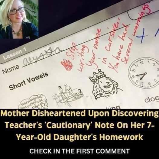 A mom posted her 7-year-old daughter’s school paper online, and people got really upset about what the teacher wrote on it. The teacher told the girl, Alyssa, not to use cursive writing.
