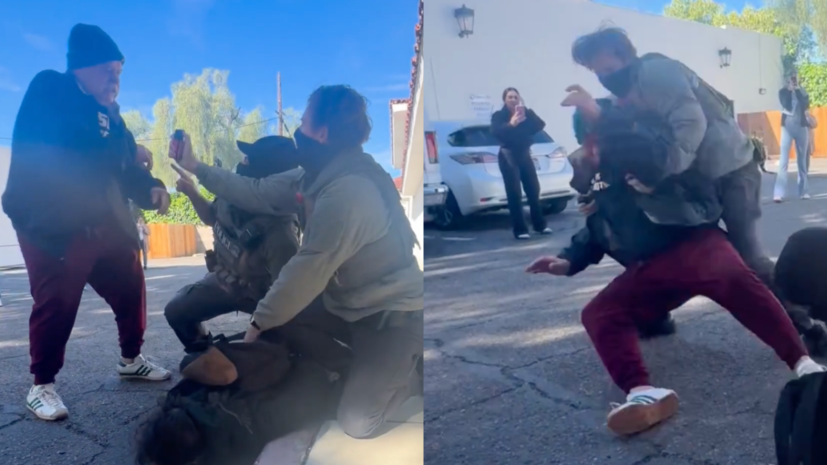 An attorney was tackled and pepper sprayed Friday outside the Santa Barbara County Probation Department, while law enforcement officers wearing vests marked “ICE” and “POLICE” took another man into custody, video obtained by the News-Press shows.