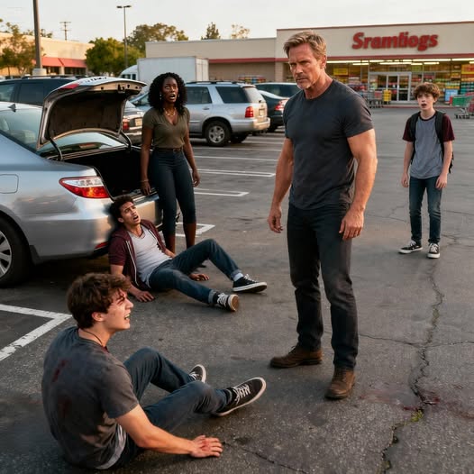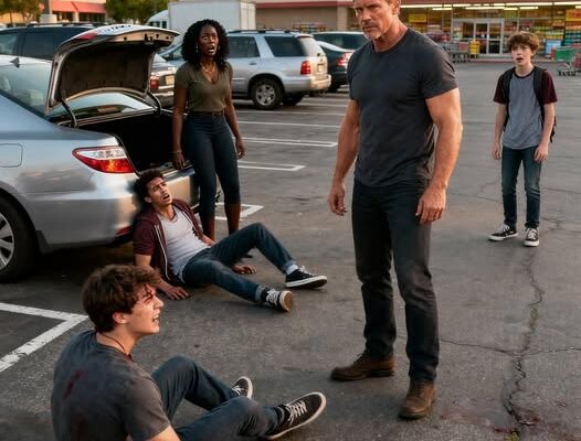 Danielle’s hand trembled in mine—not from fear, but from tightly contained rage. I had spent my life learning when to release that force. As we reached the car, I placed the bags in the trunk, eyes scanning the four who now fanned out before us. The instigator held a fountain soda, flicking it in contempt—spattering Danielle’s yellow sundress.